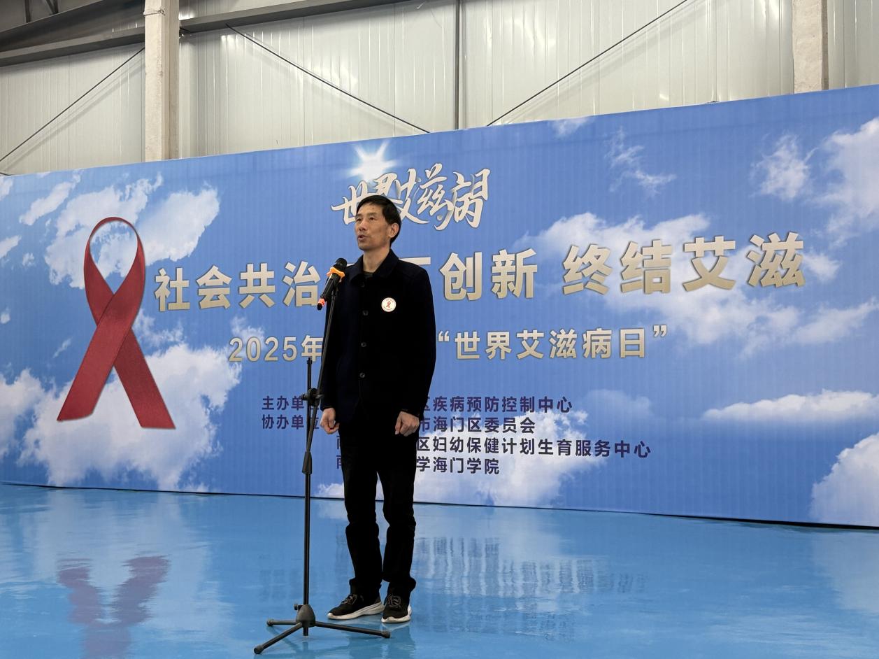 活动伊始,海门区疾控中心副主任黄诚为本次游园活动致辞。他在讲话中指出,艾滋病防治是全社会共同面临的重大公共卫生课题,而青年学生既是重点关注人群,也是推动健康知识传播的重要力量。他强调,当前艾滋病传播呈现年轻化趋势,加强校园防控、提升学生自我保护意识至关重要。