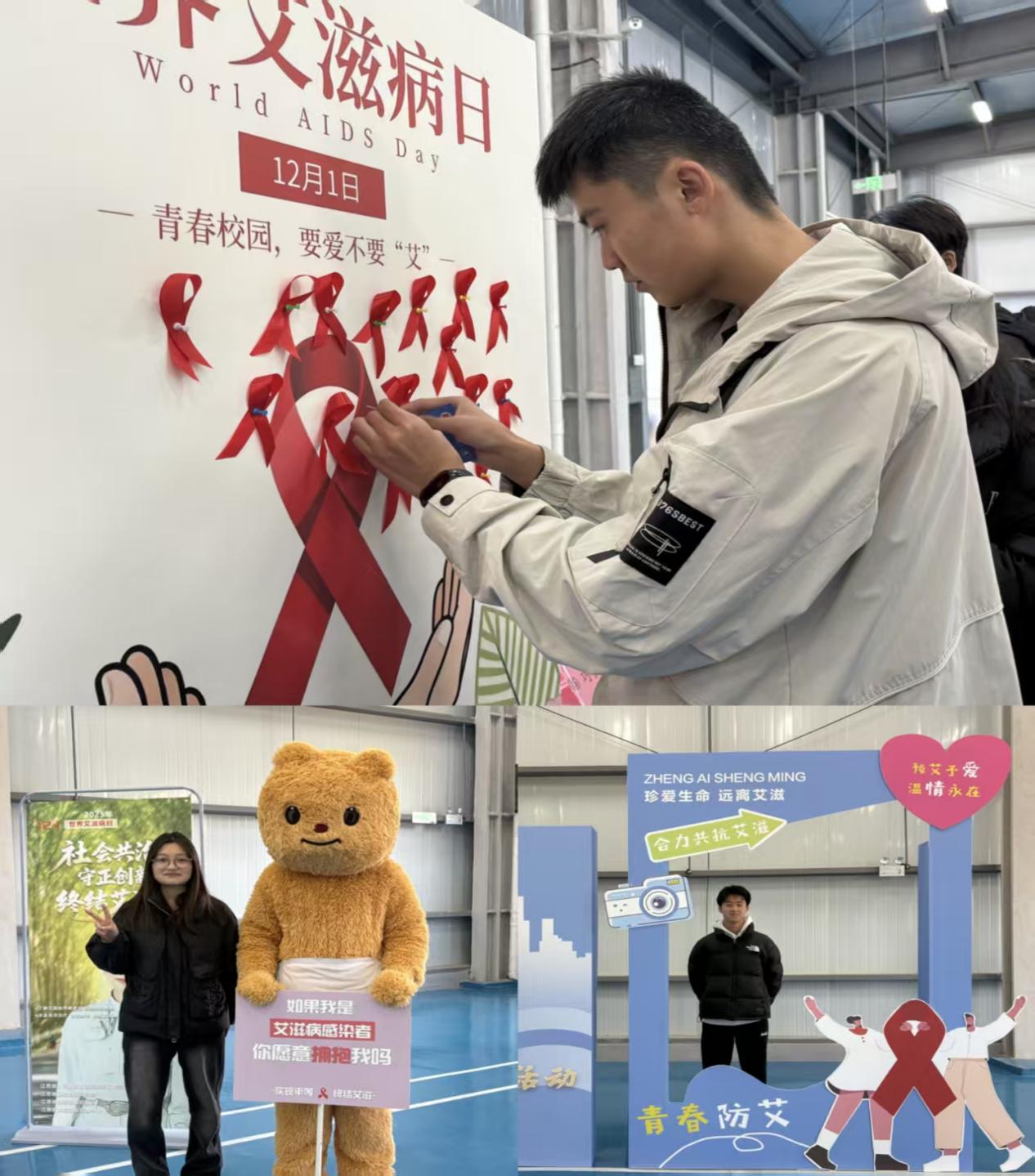 本次青春红丝带游园活动共设置了九个主题展台,内容涵盖宣传资料发放、投掷答题、手作徽章、知识判断、红丝带制作、任务抽奖、新媒体互动、趣味套圈及礼品兑换等环节。学生们通过完成各展台任务收集贴纸,在寓教于乐的互动中学习防艾知识。