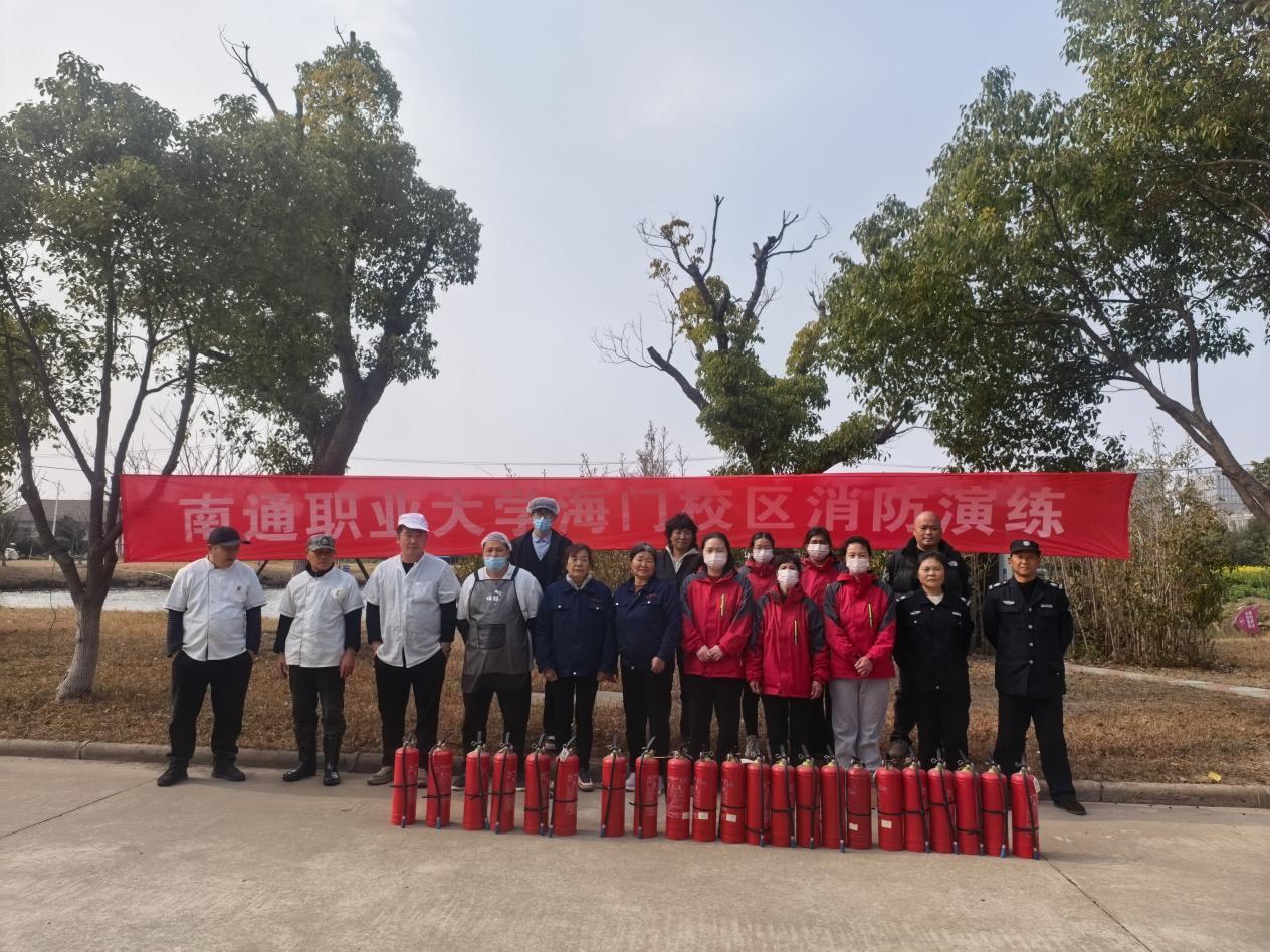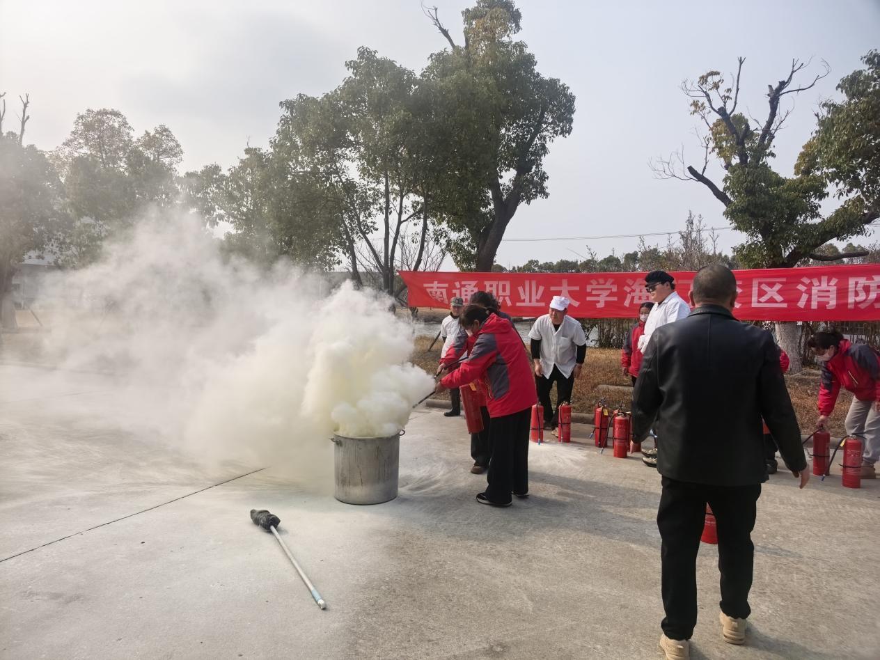 为切实加强校园消防安全工作,提高外协人员消防安全意识及应对初起火灾的自救互救能力,2026年03月12日下午,海门学院专门为学校食堂、保安、保洁、宿管等外协人员组织了一场扎实有效的灭火器实操灭火演练。