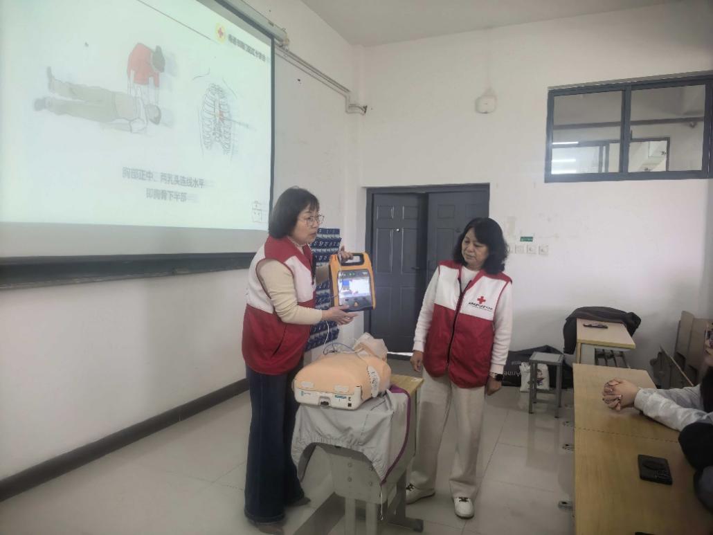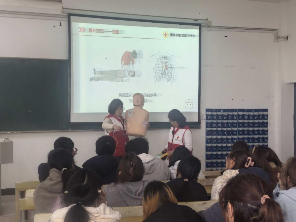 “人人学急救,急救为人人”。为了普及应急救护知识,提升面对突发事件、意外伤害事故的应急救援和自救互救能力,推进平安校园、健康校园建设,3月26日下午,海门学院在教学楼404教室举办红十字初级救护员培训活动。活动邀请海门区人民医院资深讲师范玉莲老师和操作王菊美老师作专题培训。海门学院部分学生代表、校医、保安、宿管等共计40人参加了培训。